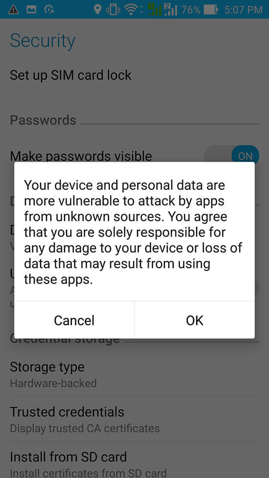 2. Jika sudah selesai, klik dan install langsung file LeMacau.apk, jika muncul keterangan Install Blocked, Pilih dan Klik “Settings”, setelah itu pilih “Unknown Source” di bagian “Security”, Centang/Klik pada bagian seperti yang dilingkari pada gambar dibawah ini.